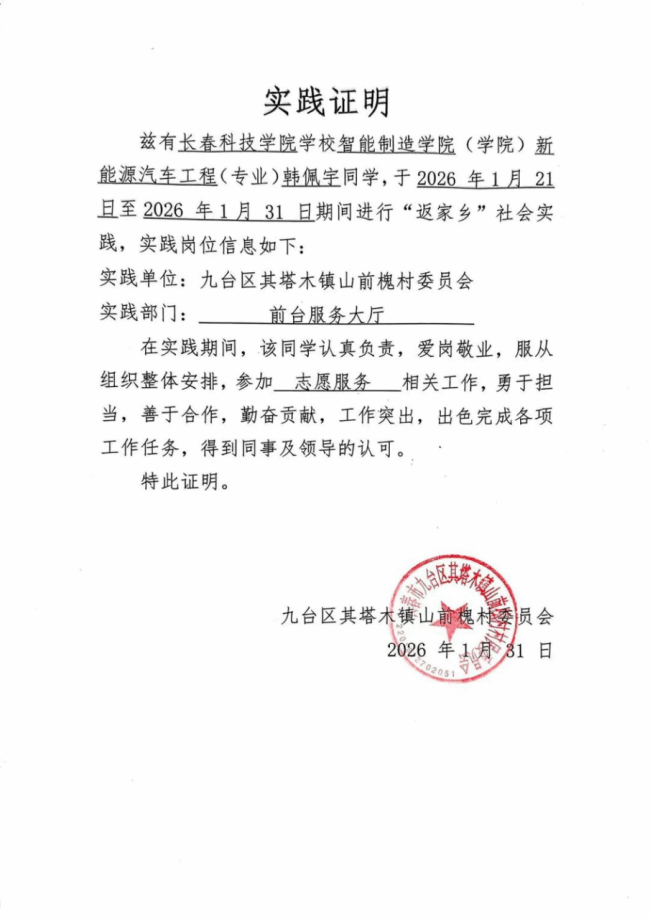 情暖寒岁添暖意,青春践行显担当!为扎根基层沃土,书写青春华章,智能制造学院积极响应号召,组织学子参与2026年寒假“返家乡”社会实践活动,躬身实践、传递温情、不负韶华。