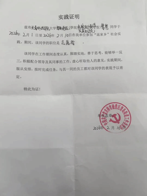 情暖寒岁添暖意,青春践行显担当!为扎根基层沃土,书写青春华章,智能制造学院积极响应号召,组织学子参与2026年寒假“返家乡”社会实践活动,躬身实践、传递温情、不负韶华。