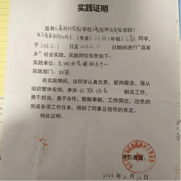 2026年2月1日至2月10日,我积极参与“返家乡”社会实践活动,有幸成为妇联报表工作的一名志愿者。短短十天的实践经历,让我从校园走向基层工作岗位,在细致繁琐的报表工作中锤炼本领,在与妇联工作人员的相处中感受温暖,不仅提升了自身能力,更深刻体会到基层妇联工作的责任与意义,这段经历成为我寒假里最珍贵的成长印记。