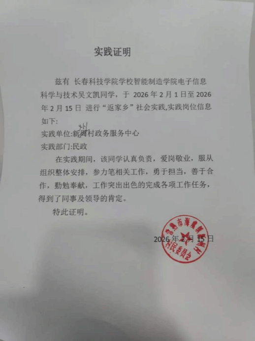 情暖寒岁添暖意,青春践行显担当!为扎根基层沃土,书写青春华章,智能制造学院积极响应号召,组织学子参与2026年寒假“返家乡”社会实践活动,躬身实践、传递温情、不负韶华。