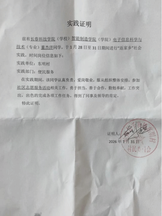 情暖寒岁添暖意,青春践行显担当!为扎根基层沃土,书写青春华章,智能制造学院积极响应号召,组织学子参与2026年寒假“返家乡”社会实践活动,躬身实践、传递温情、不负韶华。