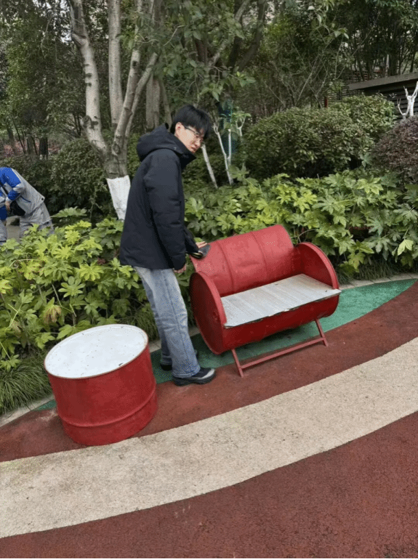 让我印象最深刻的,是儿童乐园油桶椅的日常清洁工作。社区里经过改造的创意油桶椅造型可爱,深受小朋友们的喜爱,也成为了儿童乐园里一道亮眼的风景。正因使用频率高,椅子上容易留下零食碎屑、手印污渍,角落也会积攒灰尘,影响使用体验和社区环境。我仔细擦拭油桶椅的表面,清理缝隙中的杂物,擦拭扶手和座椅上的污渍,将每一处细节都打扫干净。原本有些杂乱的油桶椅变得整洁明亮,看着孩子们开开心心地坐在干净的椅子上休息玩耍,我心中充满了满足感。这次保洁工作让我明白,维护美好环境同样是一种责任,看似平凡的清洁,也能为社区增添整洁与温馨,让环保理念在日常细节中得以延续。