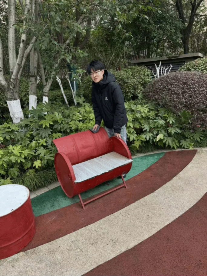让我印象最深刻的,是儿童乐园油桶椅的日常清洁工作。社区里经过改造的创意油桶椅造型可爱,深受小朋友们的喜爱,也成为了儿童乐园里一道亮眼的风景。正因使用频率高,椅子上容易留下零食碎屑、手印污渍,角落也会积攒灰尘,影响使用体验和社区环境。我仔细擦拭油桶椅的表面,清理缝隙中的杂物,擦拭扶手和座椅上的污渍,将每一处细节都打扫干净。原本有些杂乱的油桶椅变得整洁明亮,看着孩子们开开心心地坐在干净的椅子上休息玩耍,我心中充满了满足感。这次保洁工作让我明白,维护美好环境同样是一种责任,看似平凡的清洁,也能为社区增添整洁与温馨,让环保理念在日常细节中得以延续。