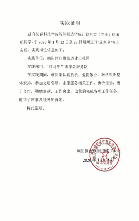 情暖寒岁添暖意,青春践行显担当!为扎根基层沃土,书写青春华章,智能制造学院积极响应号召,组织学子参与2026年寒假“返家乡”社会实践活动,躬身实践、传递温情、不负韶华。