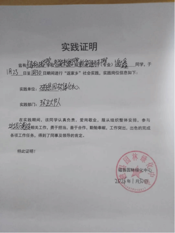 情暖寒岁添暖意,青春践行显担当!为扎根基层沃土,书写青春华章,智能制造学院积极响应号召,组织学子参与2026年寒假“返家乡”社会实践活动,躬身实践、传递温情、不负韶华。
