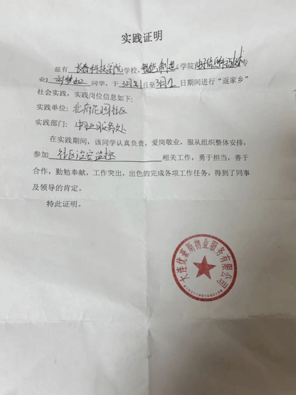 在这个寒假,我带着“把专业所学扎根基层,把青春热血奉献家乡”的初心,回到了熟悉的北府花园社区,在物业服务处的治安监控岗位上,开启了一段意义非凡的“返家乡”社会实践。这段从3月1日到3月2日的经历,不仅让我走出了校园的象牙塔,更让我在平凡的岗位上,真切体会到基层工作的温度与重量,也让我对“责任”“奉献”“担当”有了更深刻的理解。