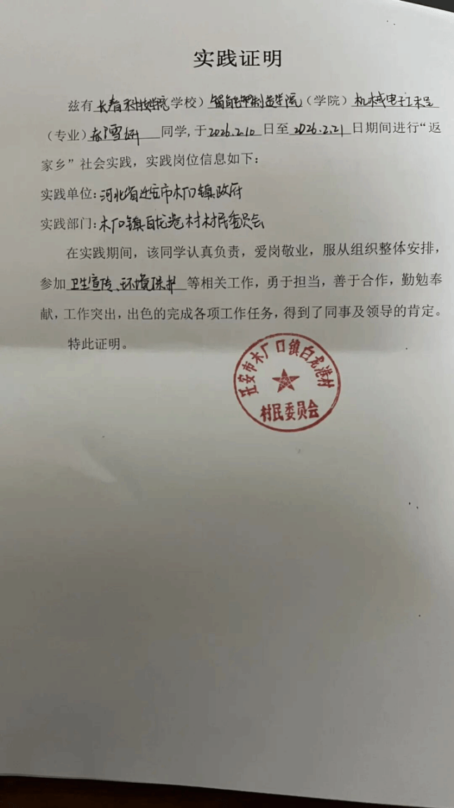 情暖寒岁添暖意,青春践行显担当!为扎根基层沃土,书写青春华章,智能制造学院积极响应号召,组织学子参与2026年寒假“返家乡”社会实践活动,躬身实践、传递温情、不负韶华。