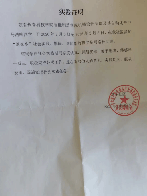 2026年2月3日至8日,我以网格长助理的身份,在长春市南关区景东社区参与返家乡志愿服务。短短6天时间,我走进基层一线,协助开展社区治理与居民服务工作,在忙碌中体会责任,在实践中收获成长,对基层工作有了真切而深刻的理解。