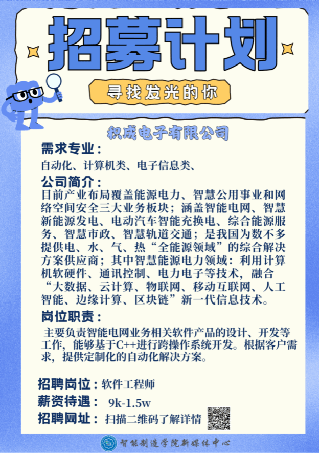 本公众号致力于提供专业的招聘信息汇总及转发服务,仅负责信息汇总与推送。如有侵权,请及时与我们联系以便删除。在求职过程中,同学们务必保持警惕。祝愿大家都能找到心仪的工作,开启精彩的职业生涯!后续学院还会持续为大家推送更多优质就业信息,请保持关注。