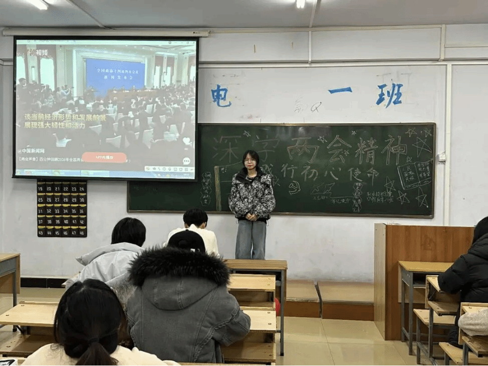 团支书首先阐明了此次学习活动的重要意义,强调“全国两会”精神是当前把握国家发展大局、明确个人成长方向的重要指引。作为新时代青年大学生,尤其是我院的学子,更应主动了解国家大政方针,将个人理想与国家需要紧密结合起来,在理论学习中汲取奋进力量。简短有力的开场动员,迅速点燃了同学们的学习热情。
