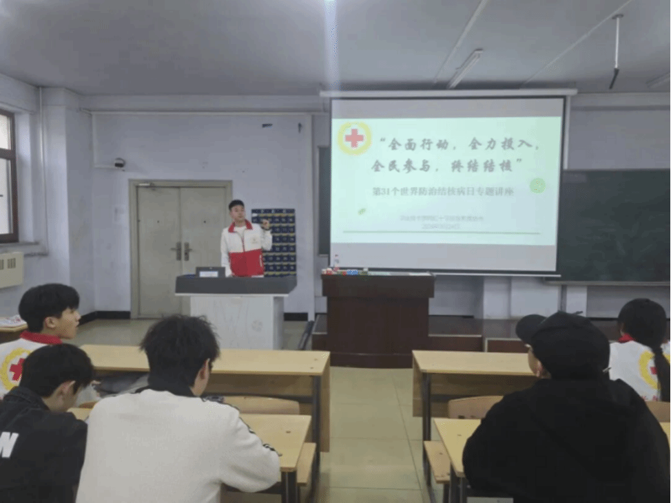 2026年3月24日,是第31个世界防治结核病日,今年我国的宣传主题为“全面行动,全面投入,全面参与,终结结核”。为深入贯彻结核病防治相关工作要求,进一步普及结核病防控核心知识,提升全院学生的健康防护意识与自我保护能力,营造健康安全的校园学习生活环境,我院红十字应急救援协会于当日下午,在第三教学楼3102教室顺利举办结核病防治专题讲座,全院各班级学生代表踊跃参与,现场学习氛围浓厚。